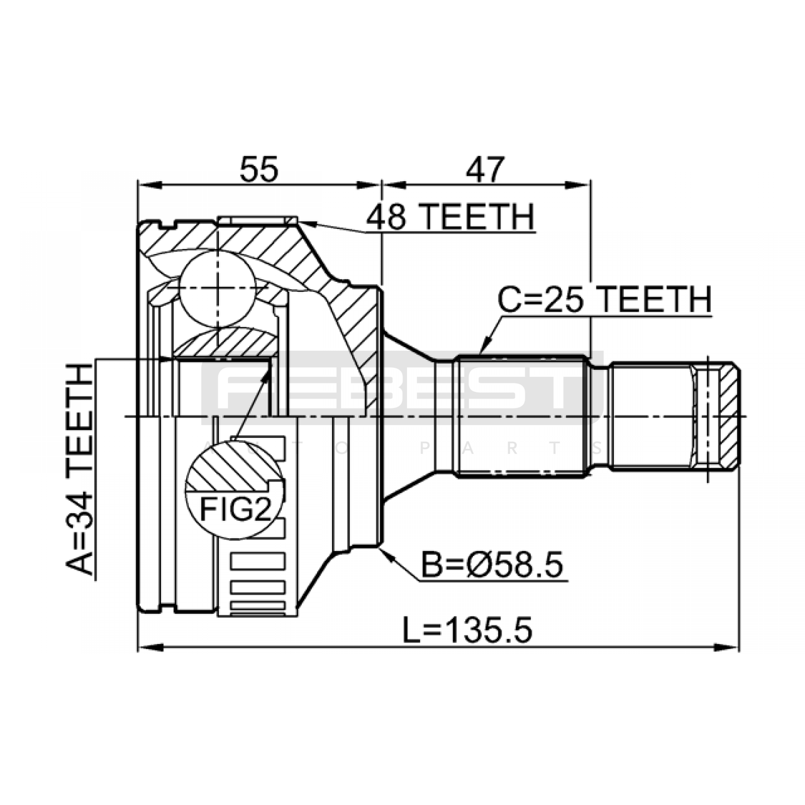 outer cv joint 34x58.5x25 FIT FOR CITROEN BERLINGO